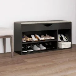 VidaXL Schoenenbank Met Kussen 104x30x49 Cm Spaanplaat Hoogglans Zwart