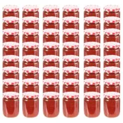 VidaXL Jampotten Met Wit Met Rode Deksels 48 St 230 Ml Glas