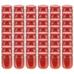 VidaXL Jampotten Met Rode Deksels 48 St 230 Ml Glas