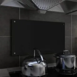 VidaXL Spatscherm Keuken 70×40 Cm Gehard Glas Zwart