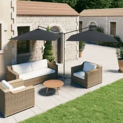 VidaXL Parasol Dubbel Met Stalen Paal 600×300 Cm Antracietkleurig