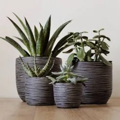 Capi 4-delige Bloempottenset Nature Rib Antracietkleurig
