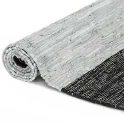 VidaXL Vloerkleed Chindi Handgeweven 120×170 Cm Leer Lichtgrijs Zwart