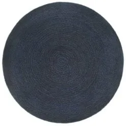 VidaXL Vloerkleed Omkeerbaar Rond 90 Cm Jute Marineblauw En Naturel