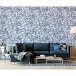 DUTCH WALLCOVERINGS Behang Palm Petrolblauw