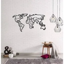 Homemania Wanddecoratie World 140×41 Cm Staal Zwart