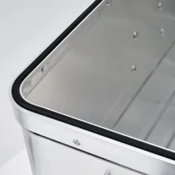 De transportkist is voorzien van 2 veiligheidssloten en is door de geprofileerde aluminium behuizing extreem schokbestendig en vormvast. Hij heeft een wanddikte van 0,8 millimeter. Het deksel is voorzien van stevige en stabiliserende scharnieren. Bovendien is de box spatwaterdicht dankzij de rubberen afdichting.