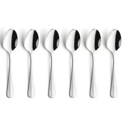 De moderne bestekset bestaat uit 6 roestvrijstalen mokkalepels. Het moderne, strakke ontwerp zonder verdere versieringen is ideaal voor een moderne tafelsetting. Bovendien is elke Amefa set vaatwasmachinebestendig en levert het gebruikte roestvrij staal een hoge corrosieweerstand.
