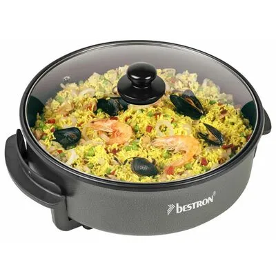 De AHP1500Z elektrische hapjespan van Bestron is een ideale optie als je een breed scala aan gerechten wilt bereiden door te braden of te bakken. Hij kan zelfs worden gebruikt om eten warm te houden.