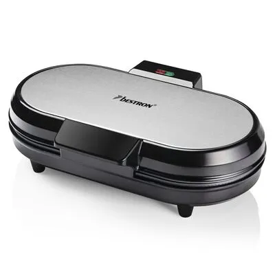 Met dit dubbele ADWM730S hartwafelijzer in zilver en zwart ontwerp van Bestron maak je in een mum van tijd heerlijke hartvormige wafels klaar.