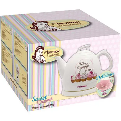 - De decoratieve keramische ketel is snoerloos zodat hij direct op de tafel gebruikt kan worden.