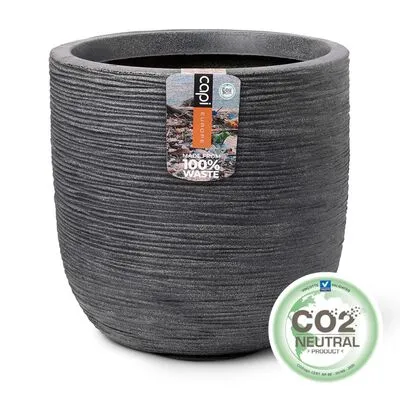 Deze staande bloembak geeft een natuurlijke uitstraling aan elke binnen- en buitenruimte en is perfect te combineren met andere vormen en maten binnen het Capi Waste Rib assortiment. Het Waste assortiment is gemaakt van 100% gerecyclede materialen middels klimaatneutrale productiemethoden. Ze zijn CO2 neutraal geproduceerd en 100% recyclebaar. Met dit assortiment zorgen we voor onze oceanen, onszelf en de volgende generatie. De Capi Waste plantenbakken zijn duurzaam dankzij de recycling van zeeafval, en echt duurzaam dankzij de gerecyclede kunststof kurken, die ze hun stevigheid geven. Ondanks de robuuste buitenkant zijn de bakken lichtgewicht en weerbestendig.