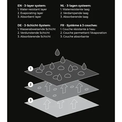- 3-laags systeem: isolerend, verdampend en waterafstotend effect