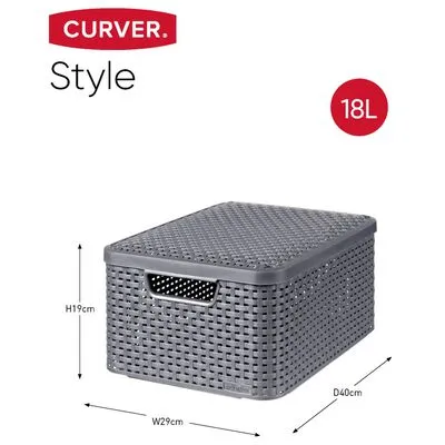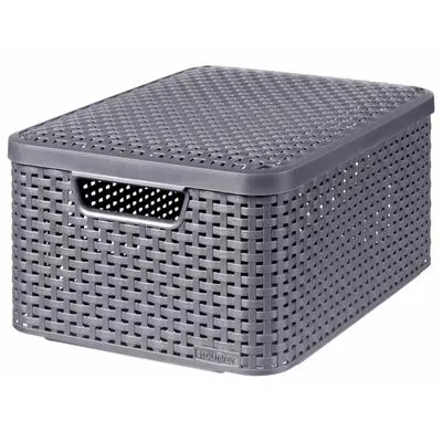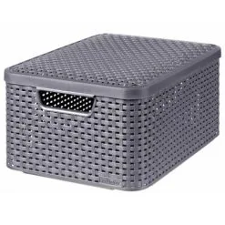 Deze Style boxenset van Curver wordt geleverd als een set van 3. De decoratieve rattan textuur geeft je interieur een unieke uitstraling. De boxen hebben ook een handig deksel, zodat je al je spullen uit het zicht en stofvrij kunt opbergen. Bovendien heeft elke opbergbox handige handvatten en zijn de boxen stapelbaar met en zonder deksel.