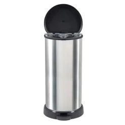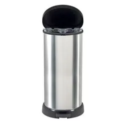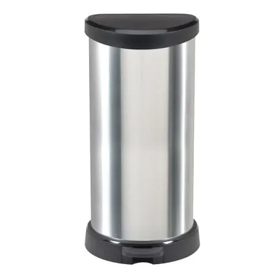 - Metaalachtige afwerking voor een eersteklas uitstraling: de D-vormige pedaalemmer heeft de trendy uitstraling van een metalen prullenbak, maar de voordelen van een kunststof prullenbak. Hij is lichtgewicht en heeft een roest- en deukvrije buitenkant. Vingerafdrukken zijn ook niet te zien op de pedaalemmer.
