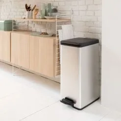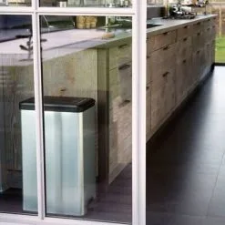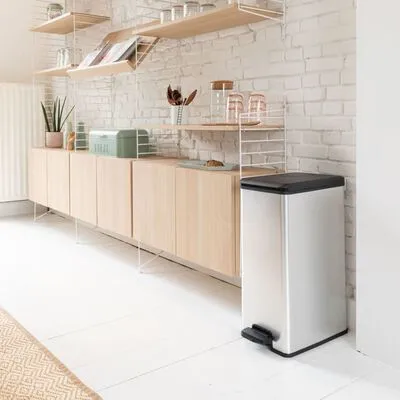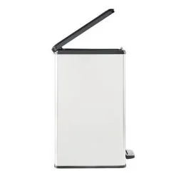 - Metaalachtige afwerking voor een eersteklas uitstraling: de rechthoekige pedaalemmer heeft de trendy uitstraling van een metalen prullenbak, maar de voordelen van een kunststof prullenbak. Hij is lichtgewicht en heeft een roest- en deukvrije buitenkant. Vingerafdrukken zijn ook niet te zien op de pedaalemmer.