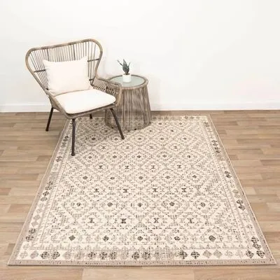 Dit beige, 230×160 cm grote kleed Copenhagen van Dutch Lifestyle is een prachtig platgeweven vloerkleed met een vintage design dat met elke interieurstijl te combineren is. Het is ook geschikt voor gebruik buiten.