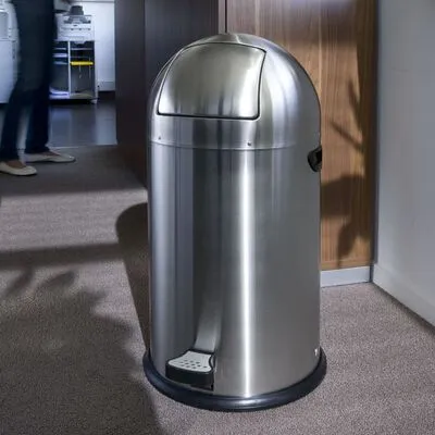 De matzilverkleurige Kickcan vuilnisbak van EKO is een trendy en elegante afvalbak met een 33 L gegalvaniseerde binnenbak en een stevig voetpedaal.