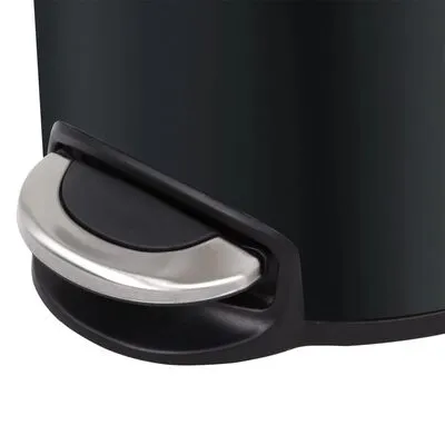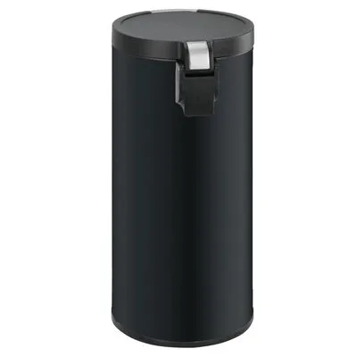 De matzwarte EKO Artistic pedaalemmer van 30 L is een ronde afvalemmer van geborsteld roestvrij staal met een vingerafdrukbestendige coating en heeft een kunststof deksel.