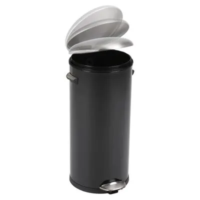 De matzwarte EKO BelleDeluxe pedaalemmer van 30 L is een ronde afvalemmer van geborsteld roestvrij staal met een retro uitstraling. Daarnaast heeft hij een vingerafdrukbestendige coating en een kunststof deksel.