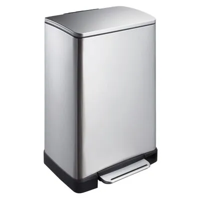 De matzilverkleurige E-Cube pedaalemmer met extra breed pedaal van EKO is een trendy rechthoekige afvalbak met een kunststof binnenbak van 40 L.