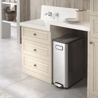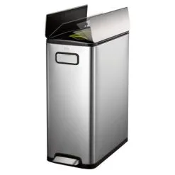 Hij is voorzien van een geruisloos sluitend deksel dat in twee delen opent, waardoor hij makkelijk onder het aanrecht past. Bovendien maken het slanke design en het pedaal aan de smalle kant hem perfect voor kleine ruimtes. Verder is deze EKO pedaalemmer gemaakt van geborsteld roestvrij staal en heeft hij ook een ingenieuze vingerafdrukbestendige coating.