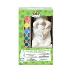 De set bestaat uit een tuinkabouter, 6 kleuren, een stencilvel en een kwast. Schilder de tuinkabouter en zet hem in je tuin!