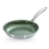 Hij is gemaakt van duurzaam gesmeed aluminium en heeft een handvat met zachte grip. Dankzij het inbegrepen, glazen deksel zijn je aanrecht en wandtegels beschermd tegen sausspatten. De steelpan heeft een diameter van 18 cm en is voorzien van een dubbele, keramische anti-aanbaklaag.