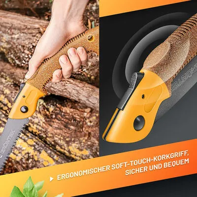 Deze comfortabele ZANDER inklapbare snoeizaag van GRÜNTEK wordt gekenmerkt door zijn aangename kurken handgreep en zacht aanvoelende vorm voor een veilige werkbalans zonder wegglijden.