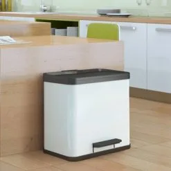 De vuilnisbak heeft 2 binnenbakken (17 + 9 L), zodat je het afval kunt scheiden, en een soft-close deksel met een brede opening. Zijn pedaal, met hygiënisch intern mechanisme, is extra breed voor het gebruiksgemak. De binnenbakken hebben handige handvatten.