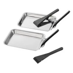 Deze set BBQ pannen en schrapers van HI zijn gemaakt van roestvrij staal en bestand tegen hoge temperaturen waardoor ze geschikt zijn voor BBQs buiten.