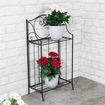 - 2-laags plantenstandaard: de rechthoekige plantenstandaard met 2 lagen heeft een hoogte van 65 cm en past gemakkelijk in een hoek. Je kunt er aardig wat bloempotten op plaatsen.