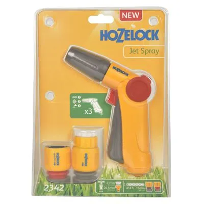 Dit complete Jet Spray spuitpistool met startset van Hozelock voorziet je van essentieel gereedschap voor het besproeien en schoonmaken van je tuin.