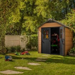 De Newton 757 is een splinternieuwe klassieker in de premium productlijn van de Keter tuinhuisjes. Hij is ontworpen met een traditionele houten afwerking en een fijn design aan de buitenkant en uitzonderlijke sterkte en duurzaamheid aan de binnenkant.