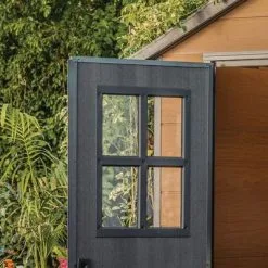 Het tuinhuis heeft een met staal versterkt frame dat bestand is tegen de elementen. De dubbelwandige constructie zorgt voor sterkte en extreme duurzaamheid. De robuuste vloer kan een zitmaaier dragen en houdt vocht buiten. Een ingebouwde ventilatieopening zorgt voor luchtcirculatie en het dakraam over de volledige lengte zorgt dat daglicht de binnenkant verlicht. Met andere woorden, dit product heeft alles wat je van een hoogwaardig product mag verwachten.