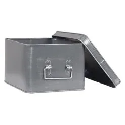 De Media opbergkist van LABEL51 is een rechthoekige, metalen kist in de kleur grijs waarin je veel spullen kunt opbergen.