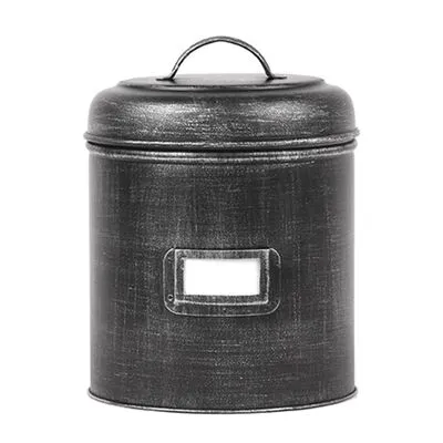 Deze voorraadbus van LABEL51 is een rond opbergblik in antiekzwarte kleur waarin je veel spullen kunt opbergen.