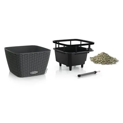 - De alles-in-één set bevat een plantenbak, een verwijderbare binnenbak met handgrepen, een waterniveau-indicator en plantensubstraat
