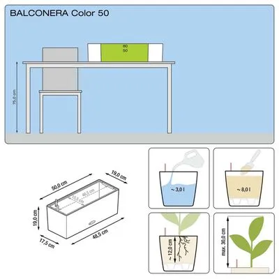 Deze Balconera Color 50 ALL-IN-ONE plantenbak van LECHUZA is ideaal voor het toevoegen van wat groen of bloeiende planten aan je balkon.