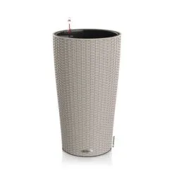 Deze elegante LECHUZA Cilindro Cottage 32 ALL-IN-ONE plantenbak heeft een wicker-look, waardoor hij de perfecte staande plantenbak is voor trendy omgevingen. Hij creëert een fantastisch contrast met weelderig groen en kleurrijke bloemen.
