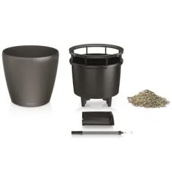 Zijn tijdloze ontwerp past bij elke interieurstijl en heeft de perfecte vorm voor een verscheidenheid aan planten. Maar dat is niet alles, de plantenbak bevat een zeer handige binnenbak en bewateringssysteem dat je planten tot 12 weken automatisch voor je verzorgt door ze de juiste hoeveelheid water en voedingsstoffen te geven die nodig zijn voor een optimale groei. De voering van de plantenbak heeft stevige, verzonken handvatten zodat het makkelijk is om planten te verpotten, wortels in te korten en om je planten op een handigere locatie, zoals een oppottafel, neer te zetten.