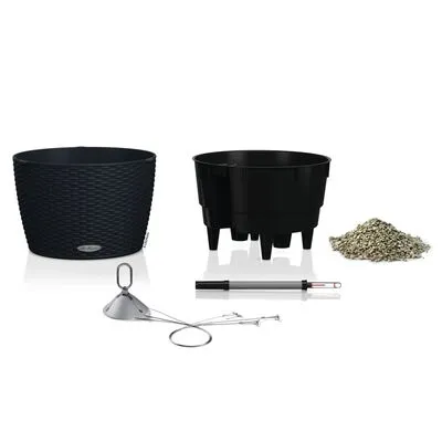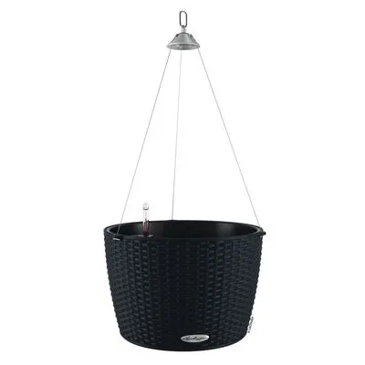 De grafietzwarte NIDO Cottage 35 ALL-IN-ONE hangende plantenbak van LECHUZA ziet er niet alleen geweldig uit, maar biedt je ook de mogelijkheid om met gemak je planten die in je kamer of tuin staan te verwisselen.