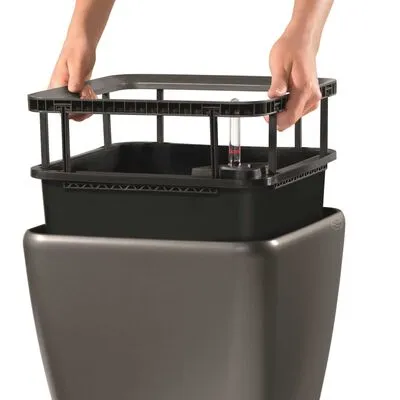 Het ontwerp heeft de perfecte vorm voor een verscheidenheid aan planten en interieurstijlen. Maar dat is nog niet alles, de plantenbak heeft een enorm handige binnenbak en een bewateringssysteem dat automatisch tot wel 12 weken lang voor je planten zorgt. Hierbij wordt er gezorgd dat de planten de juiste hoeveelheid water en voedingsstoffen krijgen die ze nodig hebben om optimaal te kunnen groeien. De binnenbak is voorzien van stevige uitgesneden handvatten die passen bij de kleur van de bak en die het eenvoudig maken om planten in de plantenbak te verwisselen, de bekleding te verwijderen voor winteropslag en je planten te verpotten op een geschiktere plaats, zoals een oppottafel.