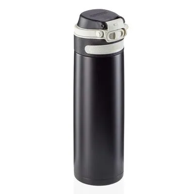 Deze 600 ml Flip thermosfles van Leifheit is een perfecte keuze voor iedereen die onderweg graag van een kopje thee of koffie geniet. De combinatie van fijn roestvrijstaal en de klassieke zwarte kleur maken van de isoleerbeker een echte blikvanger.