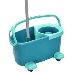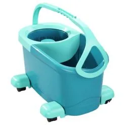 De Clean Twist rolkar maakt het reinigen van vloeren nog eenvoudiger. De 360° wieltjes bieden maximale flexibiliteit. De Leifheit vloerwisserset bestaat uit een dweilsteel, een dweilkop, een universele emmer met een inhoud van 6 L, een handige rolkar en een wringer.