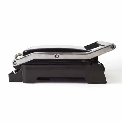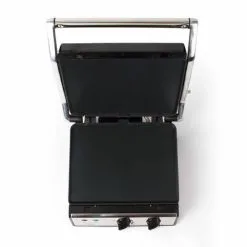 Hij heeft 2 afneembare geribbelde grillplaten en 2 vlakke platen. De platen openen tot 180° voor dubbelzijdig koken. De elektrische grill is geschikt om gemakkelijk en vetarm te grillen dankzij de anti-aanbaklaag.