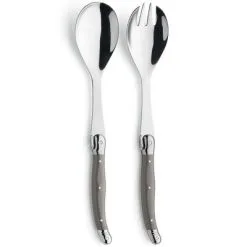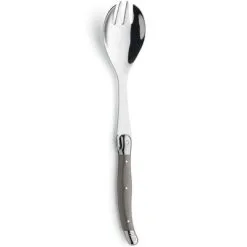 Deze bestekset bestaat uit een slalepel en een slavork van roestvrij staal en heeft mooi afgewerkte, bruin gekleurde handvatten. Elke Tradition set is vaatwasmachinebestendig en het gebruikte roestvrij staal biedt een hoge corrosieweerstand.