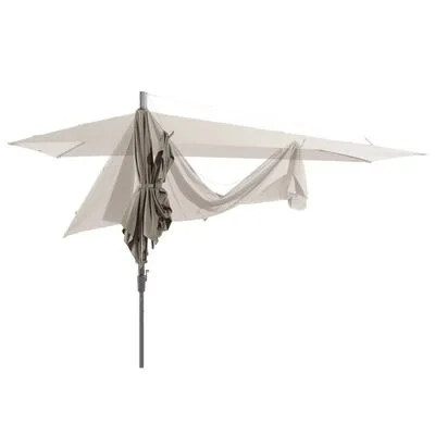 De twee belangrijkste kenmerken van deze parasol zijn: een uniek spansysteem en het eenvoudige draaimechanisme voor het openen en sluiten van de parasol. Deze parasol heeft een waterafstotend doek met volant gemaakt van hoogwaardig 220 gr/m² polyester met PA-coating. Hij beschermt tot wel 2.000 uur tegen uv-stralen aangezien hij een UPF factor van 50+ heeft!