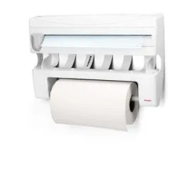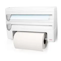 De Roll ’n roll van Metaltex is een keukenrolhouder die plaats biedt aan 3 verschillende rollen: keukenpapier, aluminiumfolie en huishoudfolie.