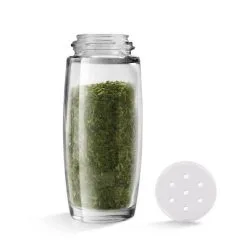 De kruidenorganizer is compact vormgegeven en ideaal voor op je eettafel, aanrecht in de keuken of in je kast. Deze kruidencarrousel bevat 8 luchtdichte glazen potjes in 2 verschillende maten. Deze kruidenpotjes worden geleverd met in totaal 16 verwisselbare schuddoppen en zijn ideaal voor zowel fijne poeders als grove kruiden en specerijen.